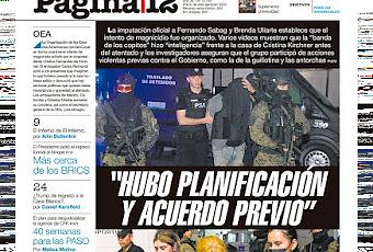 Reste à savoir si ce thème va continuer à nourrir la presse dans les jours qui viennent eu égard à l’inquiétude qui règne du côté de Balmoral. La presse argentine s’est mise sur le pied de guerre depuis ce matin devant l’évolution de la situation. Ajoutez à cela qu’à droite, les différents journaux ne voient pas d’un bon œil cette affaire prospérer médiatiquement. Si l’attentat réel se confirme comment cela en prend le chemin, le scandale risque en effet de profiter à la majorité qui s’effondrait pourtant en piqué ces dernières semaines. On constate donc que ces journaux réduisent de manière spectaculaire la place qu’ils accordent sur leurs unes à ce sujet : plus de photos, des titres secondaires placés sur le côté, plutôt difficiles à repérer pour le client qui passe en vitesse devant le kiosque le matin en se rendant au boulot.