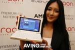 Raon Digital vient de présenter son NetBook, l' Everun Note qui dispose d'un écran LCD de 7 Pouces d'une résolution de 1024 x 600 Pixels, d'un processeur AMD Turion dual-core, d'un Giga de Ram, d'une carte graphique ATI RS690E, d'un disque SSD de 12 Giga ( une version avec disque dur classique de 80 Giga est prévue), d'une Webcam de 1.3 MegaPixels, d'un port carte mémoire SD/MMC, de la connectivité Bluetooth et Wifi.