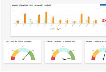 Testez gratuitement la solutionEn complément, des rapports dynamiques et personnalisables, nous avons développé un tableau de bord formation Il permet de suivre et analyser les inscriptions aux formations, les statistiques commerciales de votre organisme de formations, les différents produits du catalogue, la satisfaction et la qualité.