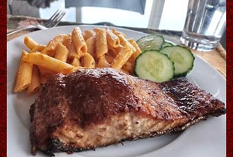 Mettre les pavés de saumon dans un plat hermétique et réserver. Mélanger tous les ingrédients de la marinade, verser sur le saumon et faire mariner environ 4 heures. Déposer les pavés sur une plaque à biscuits chemisée de papier sulfurisé. Cuire à 375° sur la grille du bas durant 16 minutes et passer ensuite sous le grill 1 à 2 minutes.