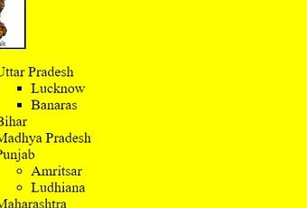 Spécification-1 : La structure du code HTML doit être correcte. L’en-tête “Liste des États et de leurs villes populaires” doit être le deuxième niveau d’en-tête au centre de la page et la couleur de fond de la page doit être jaune.