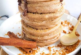 Quoi de mieux pour reprendre qu'une délicieuse tour de pancakes extra fluffy à la cannelle et au spéculoos.