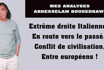 Avec l’élection de l’extrême droite en Italie, à laquelle suivront d’autres pays, nous sommes, me semble-t-il, dans le choc grave des civilisations. Mais, pas entre l’Italie et les musulmans, comme le disent avec force et conviction certaines personnes telles que Zemmour et compagnie. Nous assistons à un choc civilisationnel entre Européens eux-mêmes ! J’insiste sur cet élément de toutes mes forces.