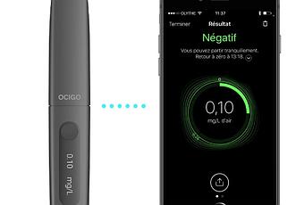 Utilisant la technologie de spectrométrie infrarouge utilisée par les forces de l’ordre, OCIGO, est un éthylotest capable de mesurer instantanément la concentration d’alcool dans l’air expiré, et d’indiquer à l’utilisateur s’il peut prendre le volant et quand (de manière digitale – l’heure et les minutes à attendre).