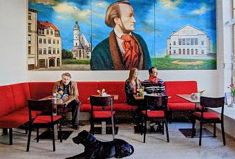 Une carte postale rapportée du Café Wagner sis sur la place du même nom à Leipzig.
