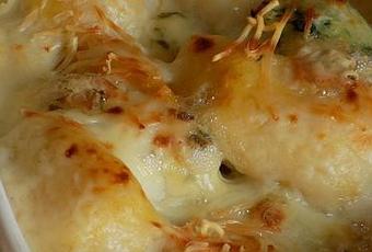 10) Répartir des gnocchis dans des cassolettes et les napper de sauce. Recouvrir de bleu émietté et enfourner 20 minutes à 180°C