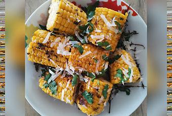 Dans mon panier de légumes de la semaine dernière, j'ai eu deux épis de maïs. Je n'ai pas l'habitude de les cuisiner alors je me suis inspirée de la recette proposée dans la fiche recettes livrée avec le panier.