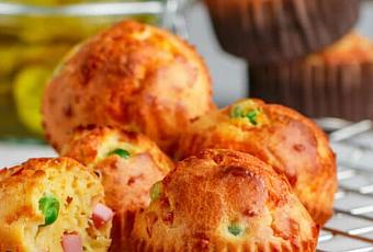 Muffins jambon-fromage et pois : toute la saveur du moelleux.