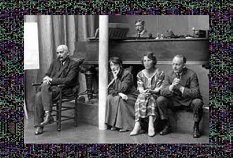 Photo : Mr Gurdjieff observant les "mouvements". A droite, Maurice Nicoll. Au piano, Alexandre de Salzmann