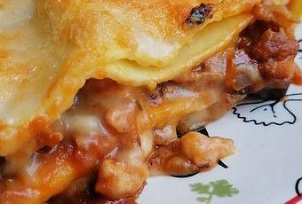 7) Dans un plat alterner des couches de préparation au poulet, de béchamel et de feuilles de lasagne en terminant par une couche de béchamel.