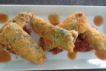 Sur l'assiette former quelques petits tas d'oignons et poser les poissons bien croustillants et salées dessus