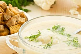Enfin voila votre soupe est prête, ajoutez les morceaux de chou-fleur et décorez avec de l'aneth.