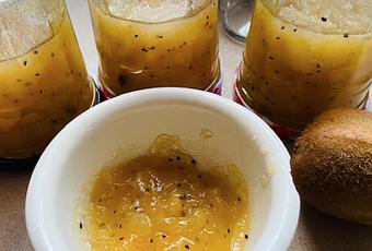 Comme je suis en plein trip confitures mais vu la saison on commence à manquer de fruits d’été, même si dans le sud les températures restent plus que clémentes pour un mois d’octobre. Je me suis rabattue sur les fruits d’octobre en mettant en pots une confiture de poires et de kiwis.