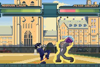 Un projet — Coup de bouledogue — est un jeu vidéo basé sur le jeu classique CAPCOM Street Fighter, un jeu multijoueur dans lequel deux personnages — généralement joués par deux personnes différentes sur le même ordinateur ou système — s’affrontent. Son rebondissement ? Le jeu intègre des personnages bien connus de Yale.