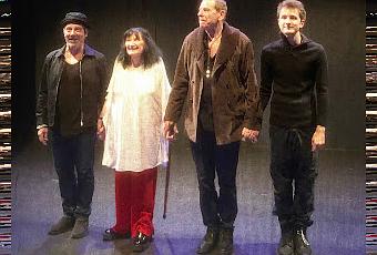 Un fils et un directeur de maison médicalisée s’affrontent autour du personnage central de la maman. Tandis qu’entre le rire et l’oubli elle rassemble les souvenirs de sa mémoire éparpillés par un traumatisme d’enfance, la maman recrée une drôle d’histoire dont il devient impossible de démêler le vrai du faux. Jusqu’à en bouleverser le cours des choses…La version que Wally Valerina Bajeux donne de la pièce est sans nul doute fidèle au texte puisque l'auteur, évitant les didascalies, ne livre aucun élément de jeu. Mais l'absence de décor m'a dérangée. L'usage de voiles complique les déplacements des comédiens et devient vite répétitif. La présence constante d'un tulle à l'avant-scène estompe la visibilité et laisse présager qu'il accueillera des projections vidéo. Il n'y a donc aucun effet de surprise lorsqu'elles arrivent. Et les images choisies sont assez conventionnelles pour évoquer l'univers de la Shoah.