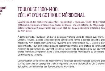 Musée de Cluny « » TOULOUSE 1300-1400 « » – L’éclat d’un Gothique méridional – à partir du 18 0ctobre 2022.
