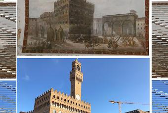 N'empêche, j'ai capté une image de la Piazza della Signoria de Florence peinte au plafond d'une des pièces de l'Uffizi et me suis amusé à prendre ensuite une photo du même lieu aujourd'hui.