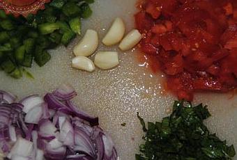 Laver et couper le 1/2 poivron et la tomate en petits dés.