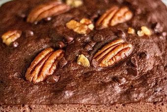 - Ajouter des pépites de chocolat et les noix sur le gâteau, cuire au micro onde pendant environ 4 minutes