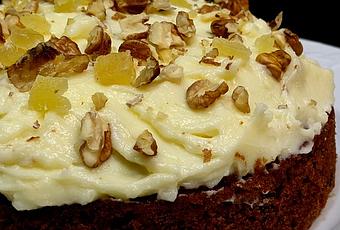 Etalez le glaçage sur le dessus puis saupoudrez les noix hachées et le gingembre sur le dessus.