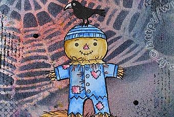 Hello, hello. Voici une petite page d’art journal pour Halloween, toute douce sans horreur…