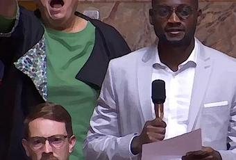 Ses propos ont été coupés par le député RN Grégoire de Fournas qui a crié dans l'hémicycle : " Qu'il retourne en Afrique ! ". Tollé général dans l'assistance. Beaucoup de députés se sont levés et ont demandé une sanction immédiate auprès de la présidente de séance, Yaël Braun-Pivet. Pour de nombreux députés, et pas seulement de gauche, cette saillie est tout simplement du racisme. Le sens en restait confus car personne ne connaît l'intention, si c'était de dire au député d'origines congolaise et angolaise de retourner en Afrique (mais il est né à Villiers-le-Bel), auquel cas ce serait une injure raciste très forte, ou si c'était de dire que le bateau doit retourner en Afrique, ce qui serait stupide car le besoin d'être secouru impose que le port le plus proche l'accueille (il y a obligation de sauvetage), et cette indifférence au sort de ces personnes en danger de mort est également contraires aux plus élémentaires des valeurs humanitaires.