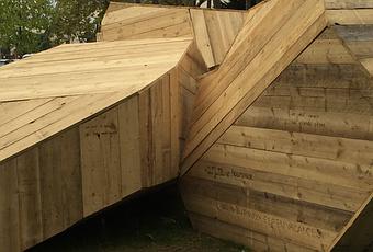 On inaugurait, ce samedi 5 novembre, une sculpture en bois imaginée par la Ktha Compagnie avec la complicité des établissements scolaires et de loisirs, des associations, des structures sociales et culturelles du quartier Université/Berthelot, le Festival Parades et la Ville de Nanterre. Pendant des mois, la Compagnie a récolté dans le quartier Berthelot des réponses à cette question simple(en apparence) : "Qu'est-ce que tu veux ?". Plus de 500 réponses ont été collectées et réunies dans un livret. Il fallait rendre ces réponses encore plus visibles. C'est sur un éboulis de rochers en bois qu'on peut retrouver quelques-uns de ces désirs ; un banc y est adossé. On peut s'y donner rendez-vous sous les arbres.