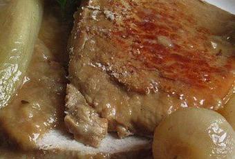 2) Faire fondre une noix de beurre dans une cocotte. Y faire dorer le rôti de porc sur toutes ses faces.