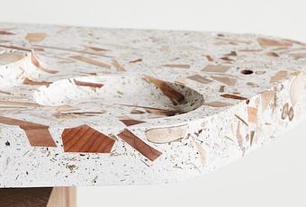 Le projet Forestbank c’est avant tout une nouvelle idée, de réemplois et d’exploitation de déchets, ici forestiers, feuilles, coupes, branches, écorces, on mélange de le tout avec une base minérale naturelle et de la résine acrylique à base d’eau sans additif pour solidifier l’ensemble. On obtient alors un terrazzo aléatoire, naturel, pouvant se jouer des teintes, des couleurs et touchers en fonction des éléments ajoutés au mélange.