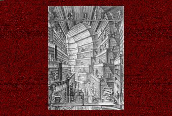 Image : Érik Desmazières, Haute galerie circulaire, pl. VII de la suite Onze estampes inspirées de « La Biblioteca de Babel », 1998, eau-forte et aquatinte, 35,5 x 25,4 - source