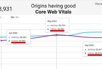 Les scores de performances de WordPress de début 2022 à fin septembre ont été relativement stables, augmentant de quelques points de pourcentage au printemps puis chutant en été, terminant septembre environ 3 points de pourcentage de plus qu’au début de l’année.
