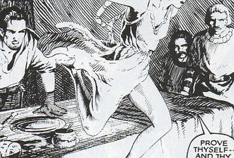 Un récit fondateur datant de la même période que Marada la louve, et qui, s'il ne présente pas encore le style peint gothique de l'artiste (voir mon article rétrospectif sur BDzoom), dévoile néanmoins de superbes planches noir et blanc, dans un dessin au trait classique magnifique. Le scénario, écrit par le même auteur, démontre une belle maîtrise de la part de Chris Claremont, déjà bien reconnu en cette année 1985 avec les épisodes cultes des Uncanny Xmen.... Et, bien que quelques longueurs soient ressenties par moment (voir le très bon article en anglais de Jeff Hebert, sur le site Heromachine (1)), on reste ébahit devant l'inventivité et l'originalité de l'histoire. L'aspect historique, assez peu fréquent sur cette période précise est très finement rendu et le fantastique prenant, voire angoissant par moment, se rapprochant même de l'horreur. Cf entre autre la scène du cercle de pierre ou le héros est entraîné sous terre par douze nones massacrées. Les passages de transformation et d'attaque des créatures démoniaques sont aussi particulièrement réussis.