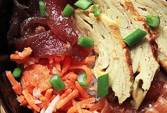 D'origine japonaise le chirashi sushi (sushi éparpillé) est un plat traditionnel japonais à base de riz vinaigré sur lequel on dépose de la garniture froide. Il a l'avantage d'être simple, rapide à préparer et très copieux. C'est l'un des plats préférés des japonais.