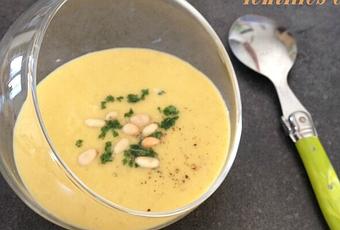 Couper le feu, ajouter le lait de coco, puis mixer. Assaisonner selon vos goûts avec le gingembre, le sel, le poivre et la coriandre.