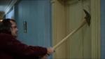 A partir de là, tout part en couilles de castor bulgare en t-shirt mauve à pois verts, ils sont piégés par la neige, et Jack va lentement mais sûrement sombrer dans la folie, les fantômes de l'hôtel, vraiment pas gentils, vont essayer de faire avec lui ce qu'ils avaient réussi à faire avec le précédent gardien, Grady, celui qui a exterminé sa famille façon Castorama avant de faire sauter la tête. Un soir, Jack se rend dans la salle de réception de l'Overlook, y entendant du bruit, et il va tomber sur une soirée costumée. Il boit un coup au bar, et se rendant dans la salle, percute par inadvertance un serveur qui s'excuse de ui avoir renversé un truc sur la veste et l'emmène aux toilettes pour le nettoyer. Cet homme lui dit s'appeler Grady (Philip Stone), Jack lui demande si ce n'est pas lui qui a tué sa famille et était gardien, Grady lui dit que non, Jack a toujours été le gardien ici, et au sujet de sa famille, il faudrait bien qu'il pense à la corriger un peu, Danny et Wendy deviennent ingérables. Au sujet de Danny : ce dernier, sentant bien que son papa ne va pas tarder à leur faire du mal malgré lui, appelle de toutes ses forces Hallorann, par la pensée. En Floride pour ses vacances, il sent le message, va tenter de les joindre par téléphone, mais les lignes sont coupées et la radio de l'hôtel ne marche pas ou plus. Alors il prend la route. Pendant ce temps-là, à l'Overlook, Jack surprend Wendy qui lisait ce qu'il venait de taper à la machine, des dizaines de pages avec une seule et même phrase répétée à l'infini, All work and no play makes Jack a dull boy (en VF, le sous-titrage dit "Un tiens vaut mieux que deux tu l'auras", mais il aurait mieux fallu traduire pour de bon la phrase, ce qui donnerait "Travailler sans se divertir rend Jack triste sire"). Il y à un jeu de mots dans la phrase, car dans le roman (cette scène y est absente, au passage), Jack tente d'écrire une pièce de théâtre (play, en anglais). Bref. Jack surprend une Wendy affolée, armée d'une batte de base-ball pour se défendre contre un éventuel intrus, et il va la provoquer, lui tourner autour en lui criant dessus, surtout quand elle va commencer à lui parler de quitter les lieux, pour Danny. Alors qu'elle monte les escaliers à rebours tout en se protégeant avec la batte, elle finit par l'assommer avec et l'enferme, inanimé, dans la réserve de la cuisine.