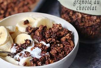 Voici la recette du granola au chocolat maison, un savoureux granola au chocolat fait maison, super facile et rapide, parfait pour le petit déjeuner.