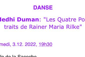 Fondation RILKE – Medhi Duman « Les quatre portraits de R.M. Rilke » le 03/12/2022 à 19h30 – Sierre (Valais)