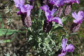 Lavandula stoechas (Lavande à toupets) est une espèce limitée aux coteaux arides siliceux de la région méditerranéenne.
