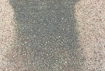 Je photographie des traces laissées par des êtres humains (du moins, je le suppose), traces qui évoquent, sans que je les touche, des formes comme on aurait fait un dessin ou une sculpture. Aujourd'hui, la première photo (à gauche) montre, en réalité, l'eau d'arrosage de plantes tombée d'un balcon sur le trottoir. L'objet sur la deuxième photo (à droite) est un sac plastique abandonné.
