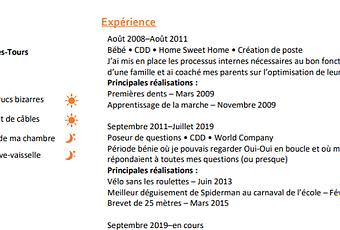 Alors comme des CV, j'en ai lu beaucoup, j'ai planché sur le truc. Et je vous soumets le CV de mon chouette Loulou avec ses plus grandes réalisations et qui, comme tout ado, rêve de programmation et de codage.