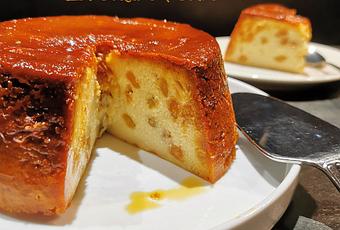 4. Verser dans le moule caramélisé et mettre au four préchauffé à 180° pendant 35 minutes. Laisser refroidir à température ambiante avant de démouler. Déguster tiède ou conserver au frais.