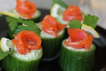 Voici la recette des bouchées de concombre au saumon, de savoureuses bouchées légères à base de concombre, petits suisses et saumon, facile et simple à réaliser pour un apéritif léger.
