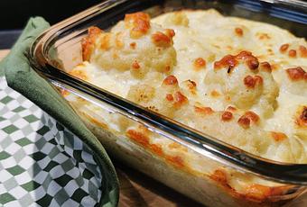 1. Laver le chou fleur, prélever les sommités et les précuire à la vapeur (8mn en cocotte minute). Laisser tiédir, égoutter et placer dans un plat à gratin.