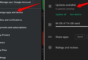 - Sélectionner Gérer les applications et l’appareil >Puis appuyez sur Mises à jour disponibles.