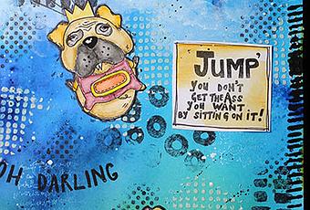 Hello, hello. Voici ma 44ème page d’art journal. J’ai ressorti mes brushos qui dormaient dans un tiroir. J’ai également utilisé plein de petits tampons de différentes marques.