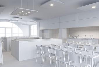 Cantine, maquette en blanc