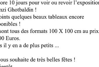 Galerie Claudine Legrand  – exposition Ramzi Ghotbaldin – encore 10 jours….. Galerie Claudine Legrand  – exposition Ramzi Ghotbaldin – encore 10 jours….. Explore posts in the same categories: galeries