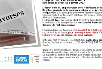 La Critique d’Art – « Traverses » Appel à candidatures »