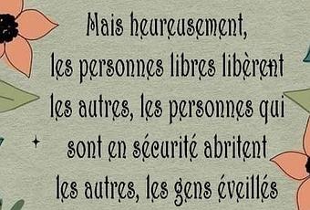 Oui, c’est vrai que les gens blessés blessent les autres. Mais, heureusement, les personnes libres libèrent les autres, les personnes qui sont en sécurité abritent les autres, les gens éveillés éveillent les autres et l’Amour gagne toujours.