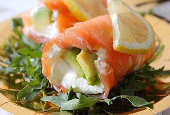 Poser une feuille de film alimentaire et une tranche de saumon fumé dessus. Etalez la farce sur le saumon fumé et déposez des morceaux d’avocat puis rouler à l’aide du film alimentaire. Mettez ensuite pendant quelques heures au réfrigérateur.